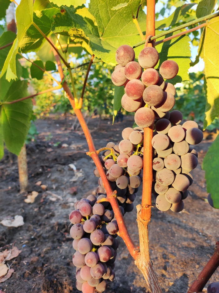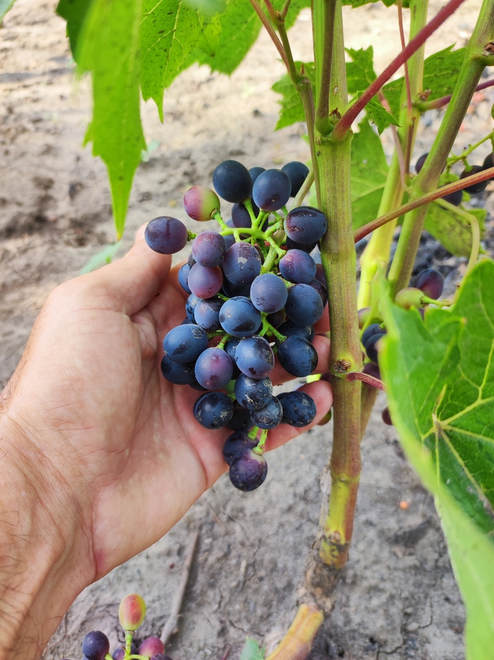 Красавец. Очень интересный, такой бархатистый окрас. Лоза вызрела у одного из первых. А вот на вкус не всем зайдет. Это лабруска, изабельные тона тут чувствуются. Сам я Изабеллу на вкус не люблю, но тут этот привкус не такой вяжущий.