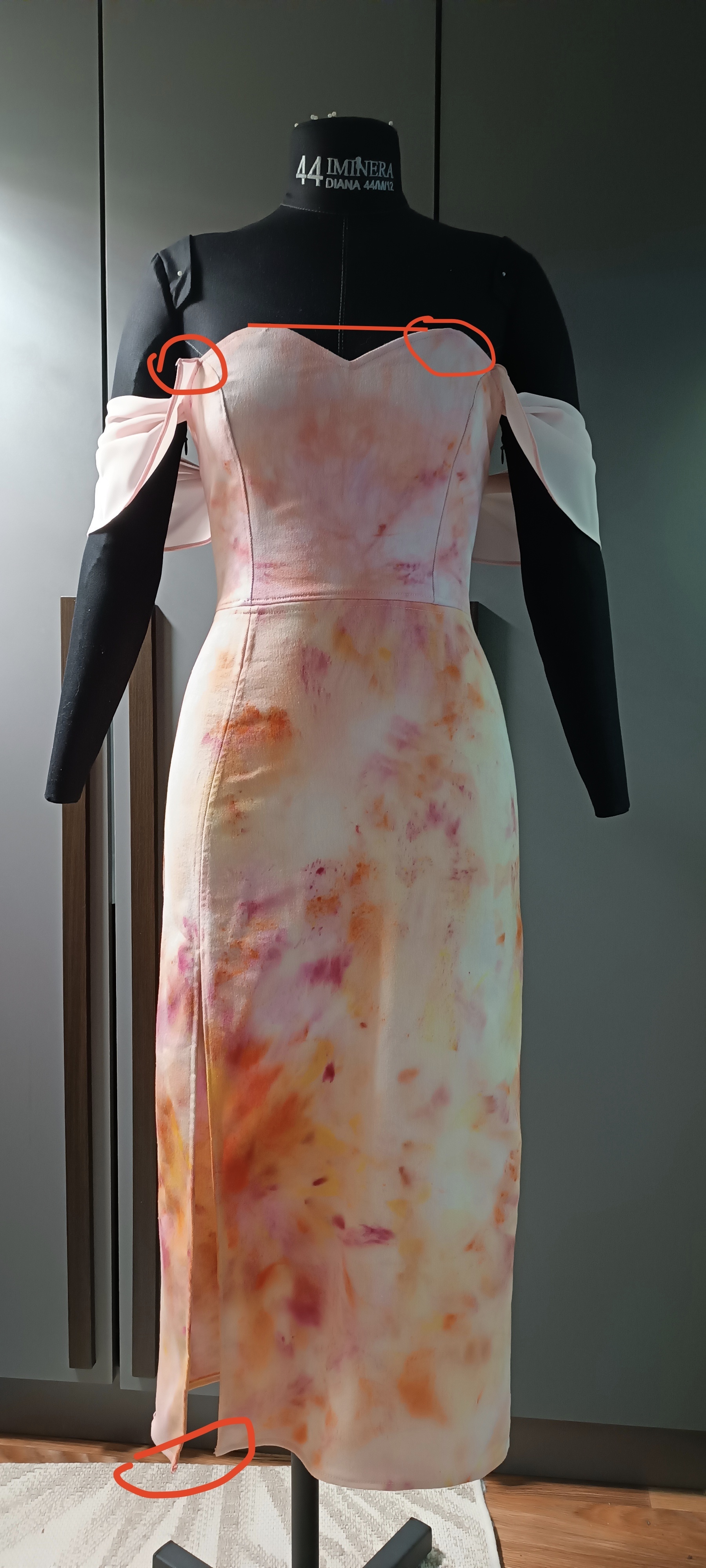 Разработка модели платья была для меня немного трудновата, так как это первая работа, и тогда ещё не было полного понимания некоторых моментов, в отличие от нынешнего состояния. Сейчас я гораздо увереннее моделирую на манекене 😁 Рукавчики выполнены из лёгкого шифона.