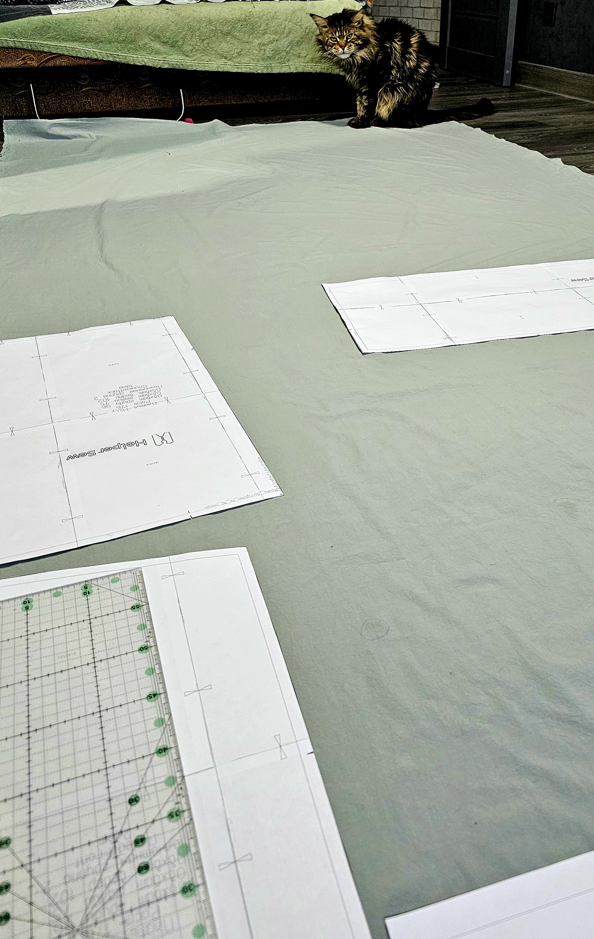 Кроить помогал хвостатый лохматый - без него никак. У меня, как и у многих других - "раскройный пол"