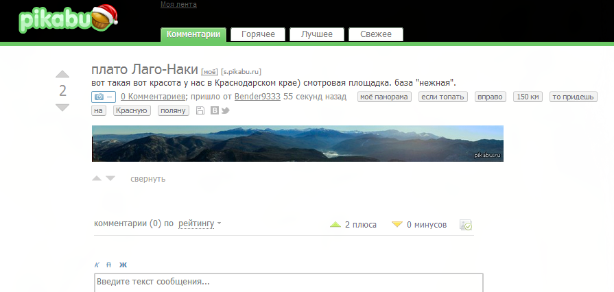Bender9333 плато Лаго-Наки 12 лет назад вот такая вот красота у нас в Краснодарском крае) смотровая площадка. база "нежная". [моё] Панорама Если топать Вправо 150 км То придешь Тег Поляну