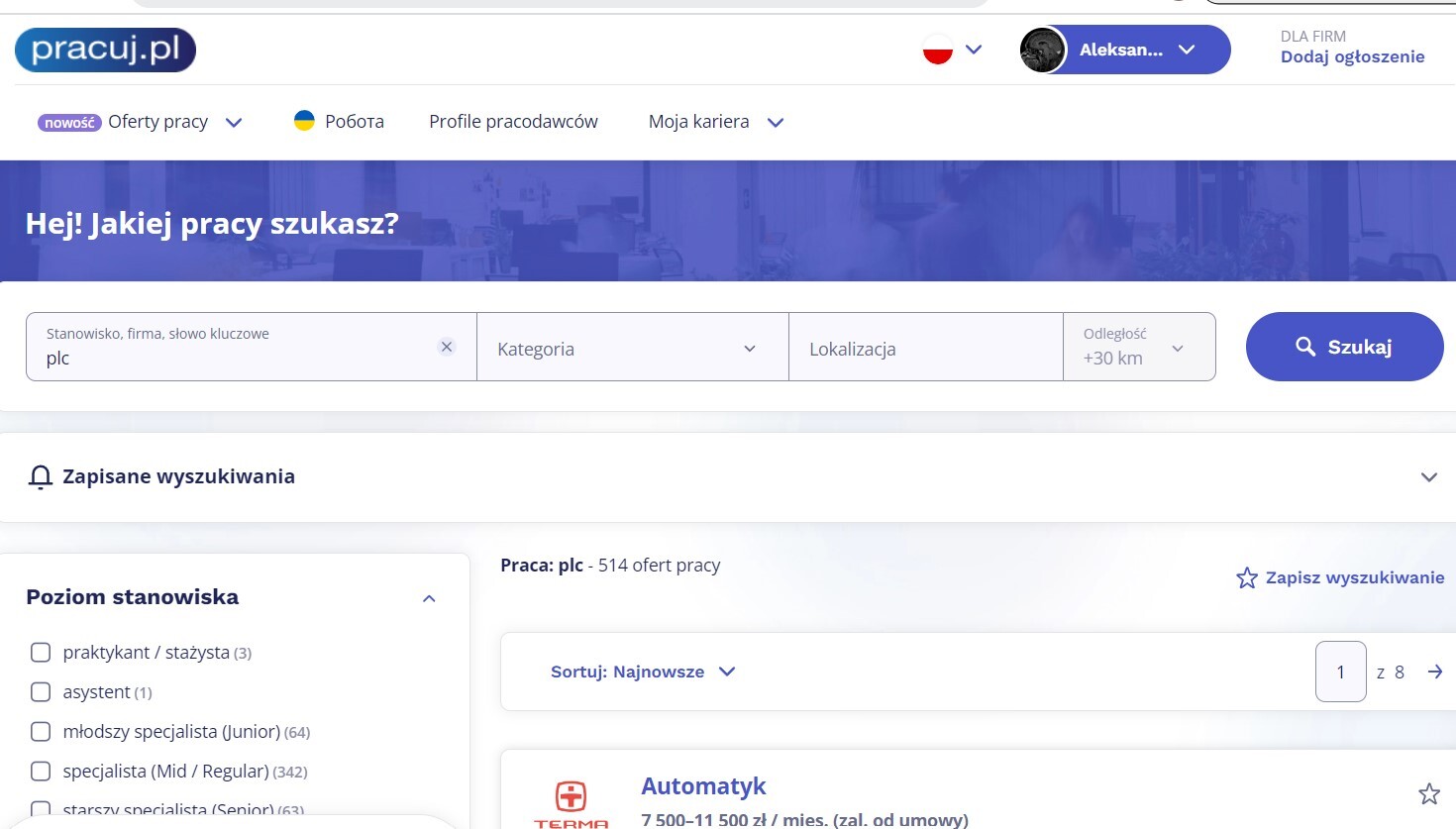 это - если показать все вакарсии с упоминанием ПЛЦ - видите, 514 предложений работы