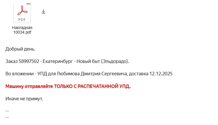 Сказал возвращать груз в Екатеринбург и расторгаем договор.