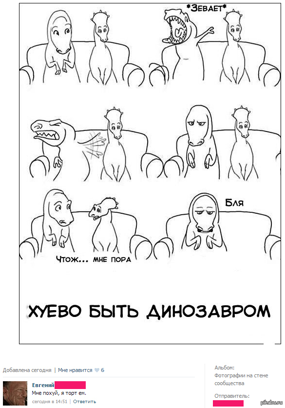 DELETED 12 лет назад Плохо быть динозавром... Но как всегда, комменты радуют.) Динозавры Юмор Комментарии Комменты ВКонтакте