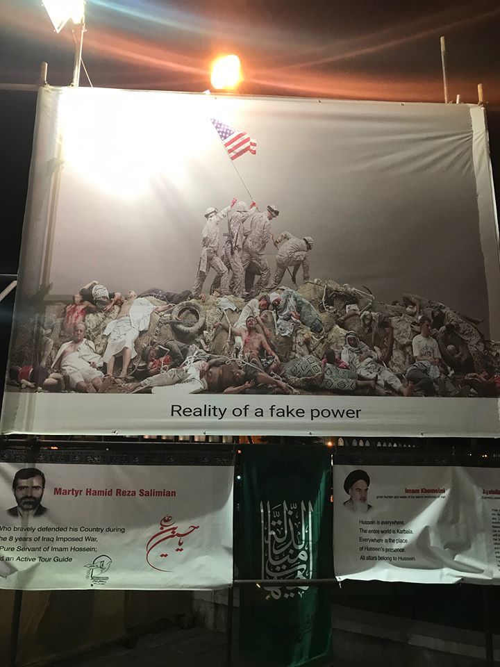 Мы это могли наблюдать в основном в виде плакатов, вывесок. Что Израиля вообще не должно быть, а США — обитель зла. Это все муссируется в публичных местах вроде базаров и центральных площадей (см.фото). При этом, согласно википедии, правительство Ирана выступает против правительства США, а не против обычных граждан.