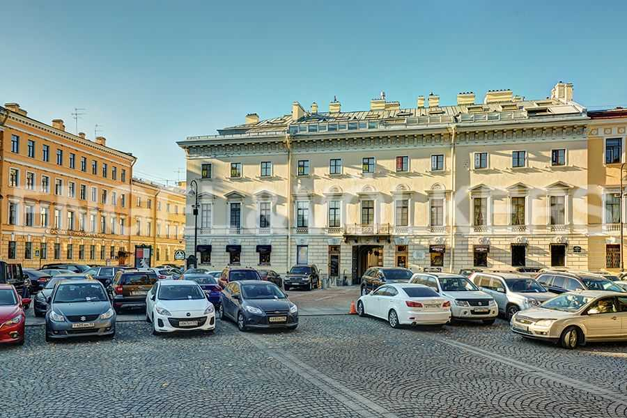 На площадке искусств не заметить отель «Европа» просто невозможно. Он охватывает буквально целую Михайловскую улицу. Так было не всегда, изначально был построен маленький особняк, после этого в течении 19 века его постоянно перестраивали. Достраивали доходные дома, соединяло всё это вместе и после получился такой грандиозный отель. И с этим отелем связана очень забавная история. Когда случилась революция и все дворяне начали покидать Санкт- Петербург и уезжать в Европу, один из миллионеров спрятал некий клад в одном из номеров. Уехав в Европу он рассказал об этом своему сыну. После какого- то времени сын возвращается, снимает отель, с номером якобы в котором спрятан клад. Но после революции нумерацию в отеле поменяли. То есть он снимает неверный номер, начинает вскрывать там пол и обнаруживает там очень большой винт. Он думал что открутив этот винт найдёт там клад и кучу денег. Но что в итоге происходит? Он откручивает винт и люстра которая находилась номером ниже падает. Никаких денег там естественно не было. Этой историей вдохновились создатели фильма «Приключения итальянцев в России»