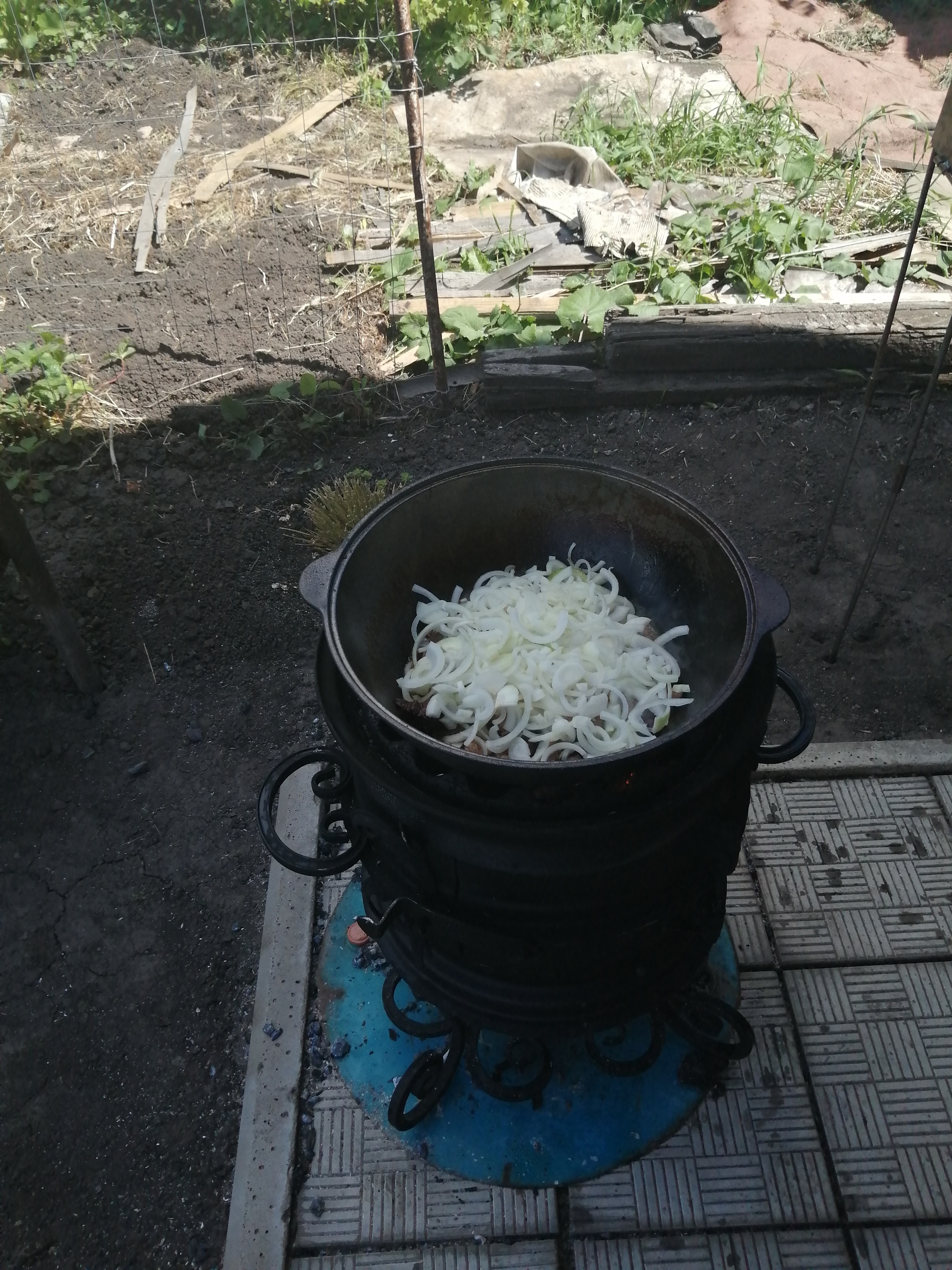 Итак, что нужно для приготовления: казан (10 литров), дача, лето, хорошее настроение и, самое главное, друг, который обожает плов. Именно он главный критик и вдохновитель.