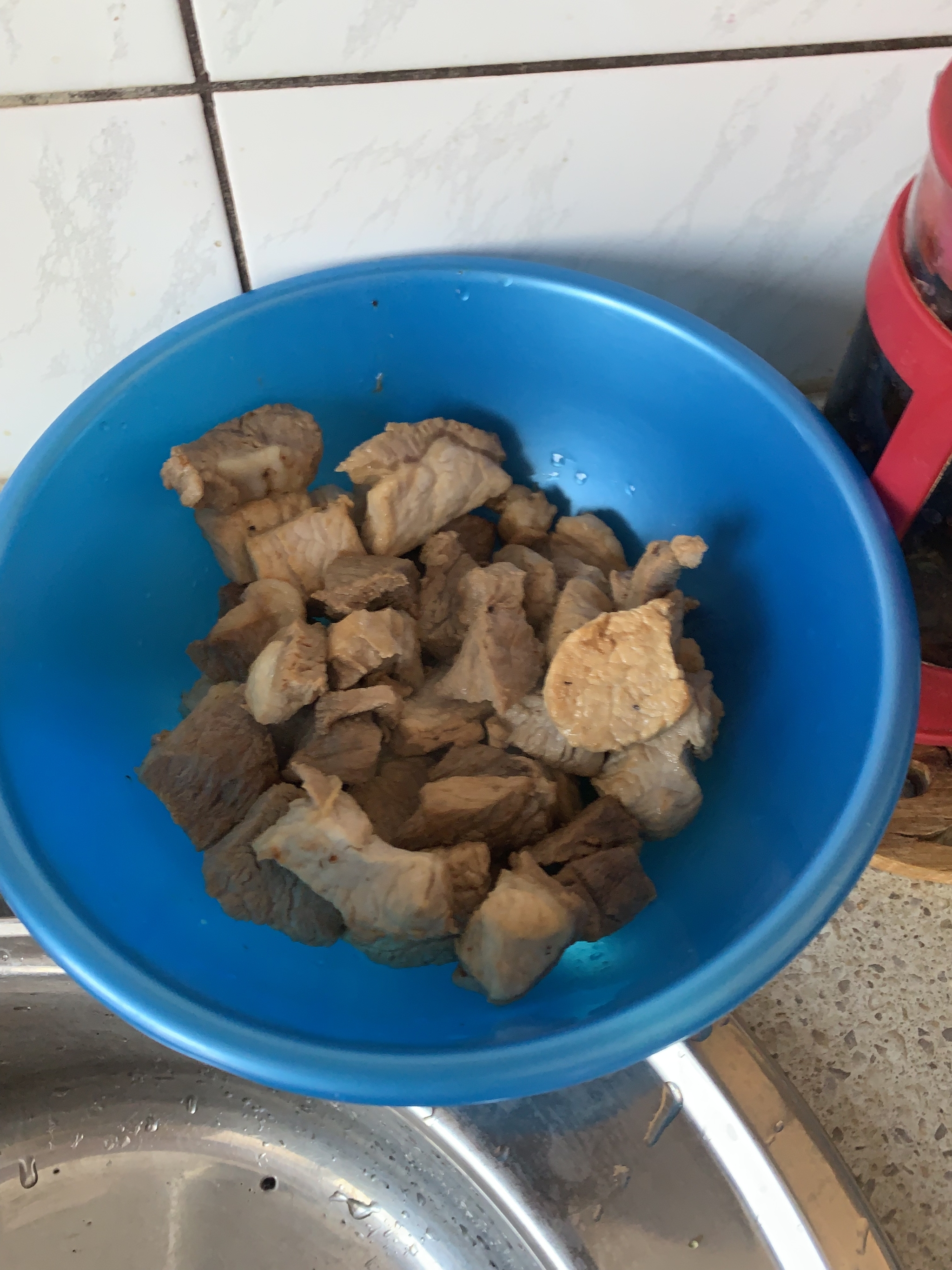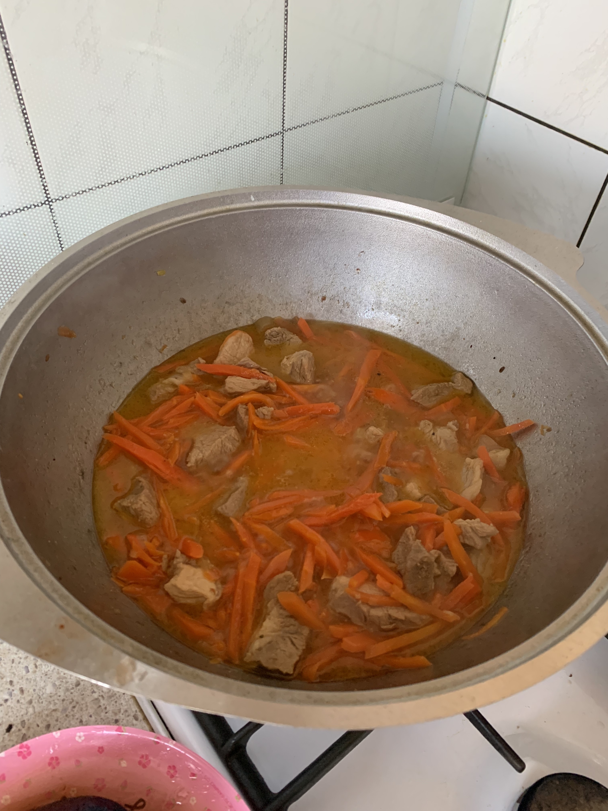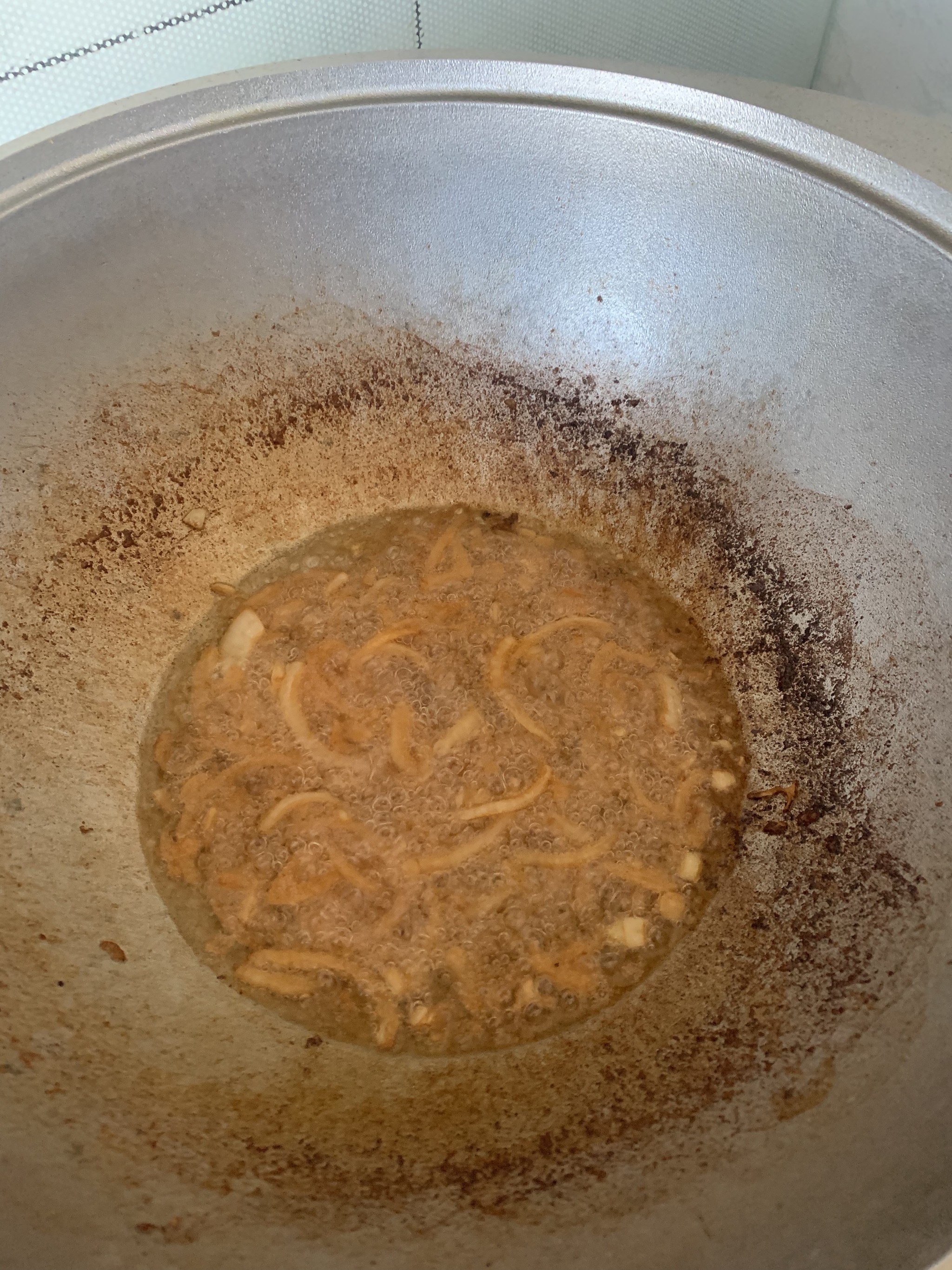 Потом втудой закинул свинины. Как все обжарилось то мясо достал и закинул лук