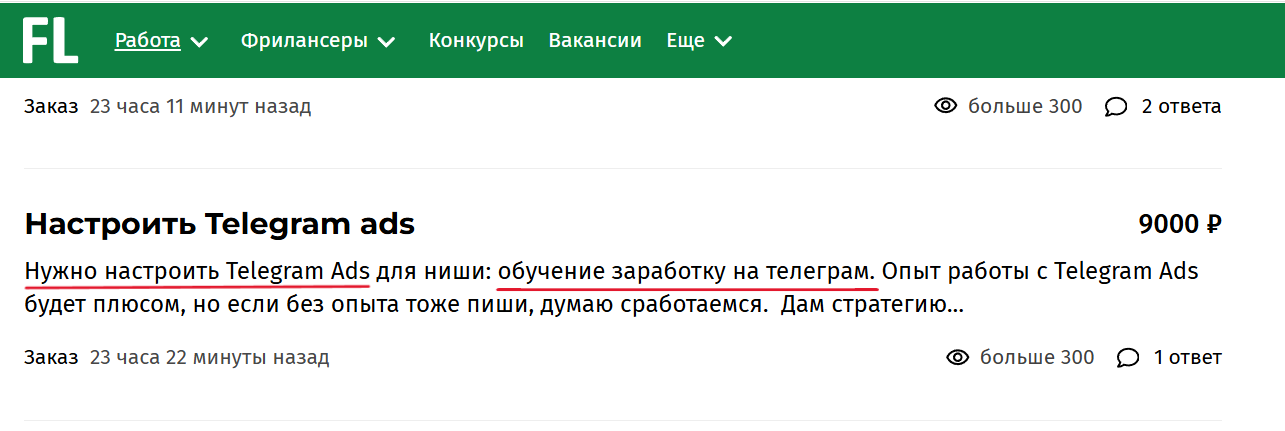 Здесь связка из рекламы и сайта. Оба объявления от одного "спеца", ведущие на разные сайты. При этом ключи те же. То есть присутствует каннибализация. Но он же профи. Он так видит.