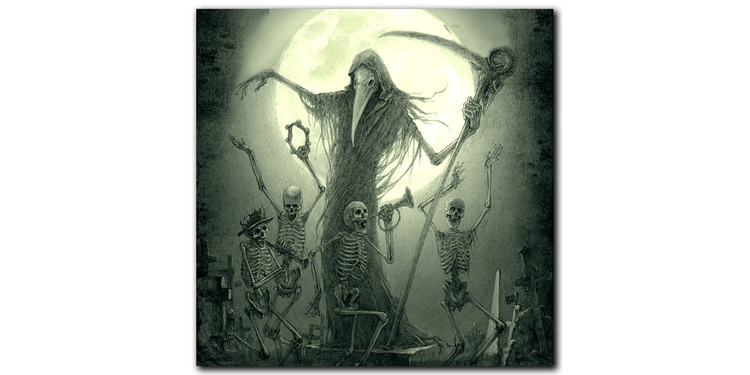 Ул не сразу расслышал хриплый посвист дудки: из сумерек, держась за руки, к повозке приближались люди, молча корчившиеся в пляске смерти. Возница помахал им рукой, а чумной доктор с облегчением снял маску: лицо его, как и у пляшущих, было распухшим и красным. Пляшущие окружили повозку, доктор ухватил руку Эжени багровыми раздутыми пальцами и повлек за собой в хоровод. Бледный конь заржал и сбросил упряжь. Возница расхохотался, схватил Эжени за другую руку и откинул капюшон. Ул узнал его: Всадник по имени Смерть поглядел наверх и подмигнул Улу, радуясь, что привел приговор в исполнение.