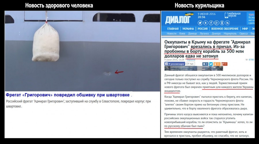 ... Избежать вмятин борта судна помогут грамотно развешанные по бортам свидомые хохлы в качестве мягких кранцев.