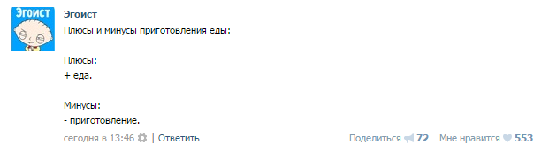 825 HateYourAssin Плюсы и минусы приготовления еды: 10 лет назад Плюсы: + еда. Минусы: - приготовление. Еда Текст Дизньболь Питайтесь правильно