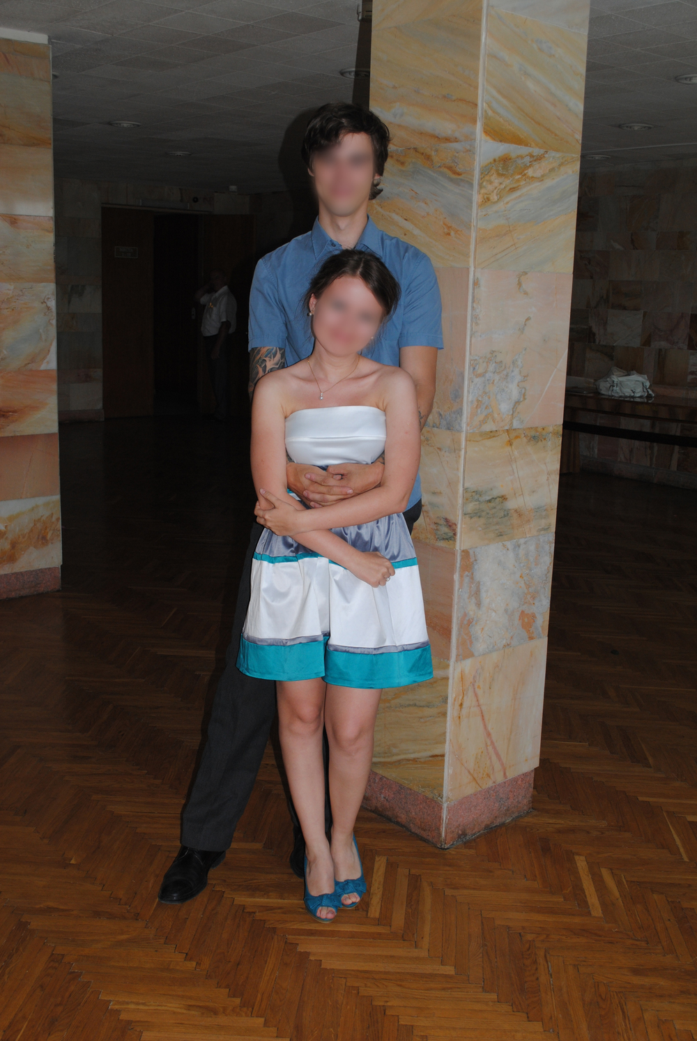 Голова+шея+каблук, и она стоит ровнее чем он