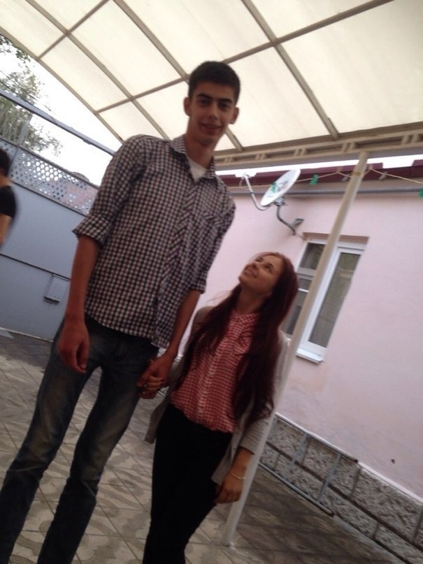 Та девушка тоже почти по плечо. Просто комплекция очень уж разная и парень кажется очень большим.