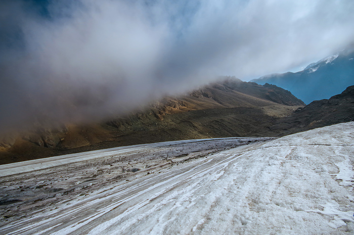 Местами ледник довольно крут. Желательно ходить в кошках.