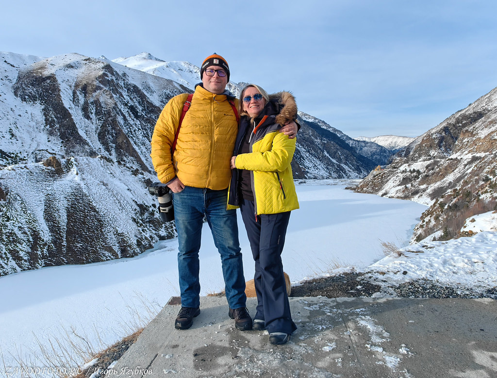 А раз есть ГЭС, то есть и Зарамагское водохранилище. Естественно, необычайной красоты, на Кавказе все они такие. Как на его фоне не запилить себяшку со Светой.