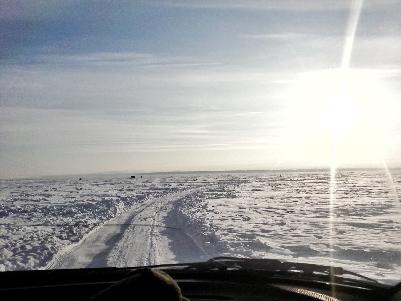Обратно было решено ехать по нормальной дороге, но по другой стороне Ангары (река). Обычно лёд расчищается, ставятся знаки дорожного движения, но на 3 января переезд еще не был официально открыт, поэтому ехали просто по накатанной автомобилями дороге.