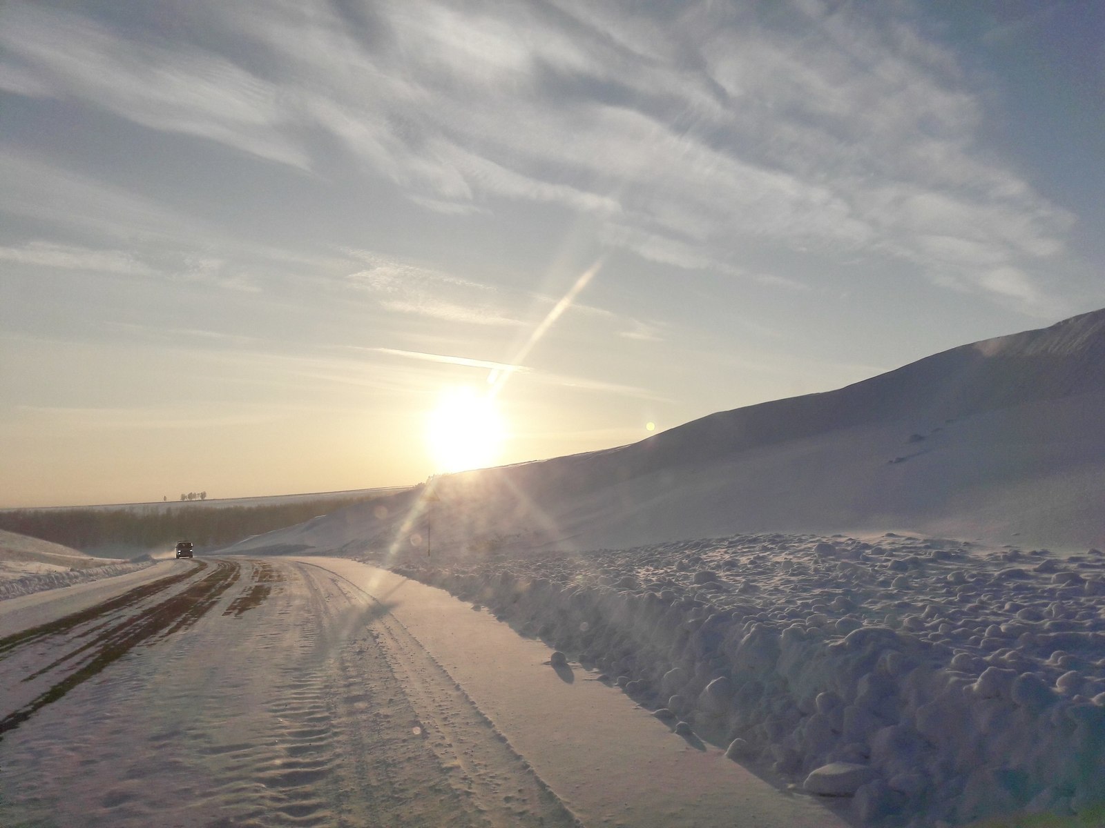 Справа - не горы, а надувы от недавней метели. Не Сахалин конечно, но тоже неслабенько так дунуло