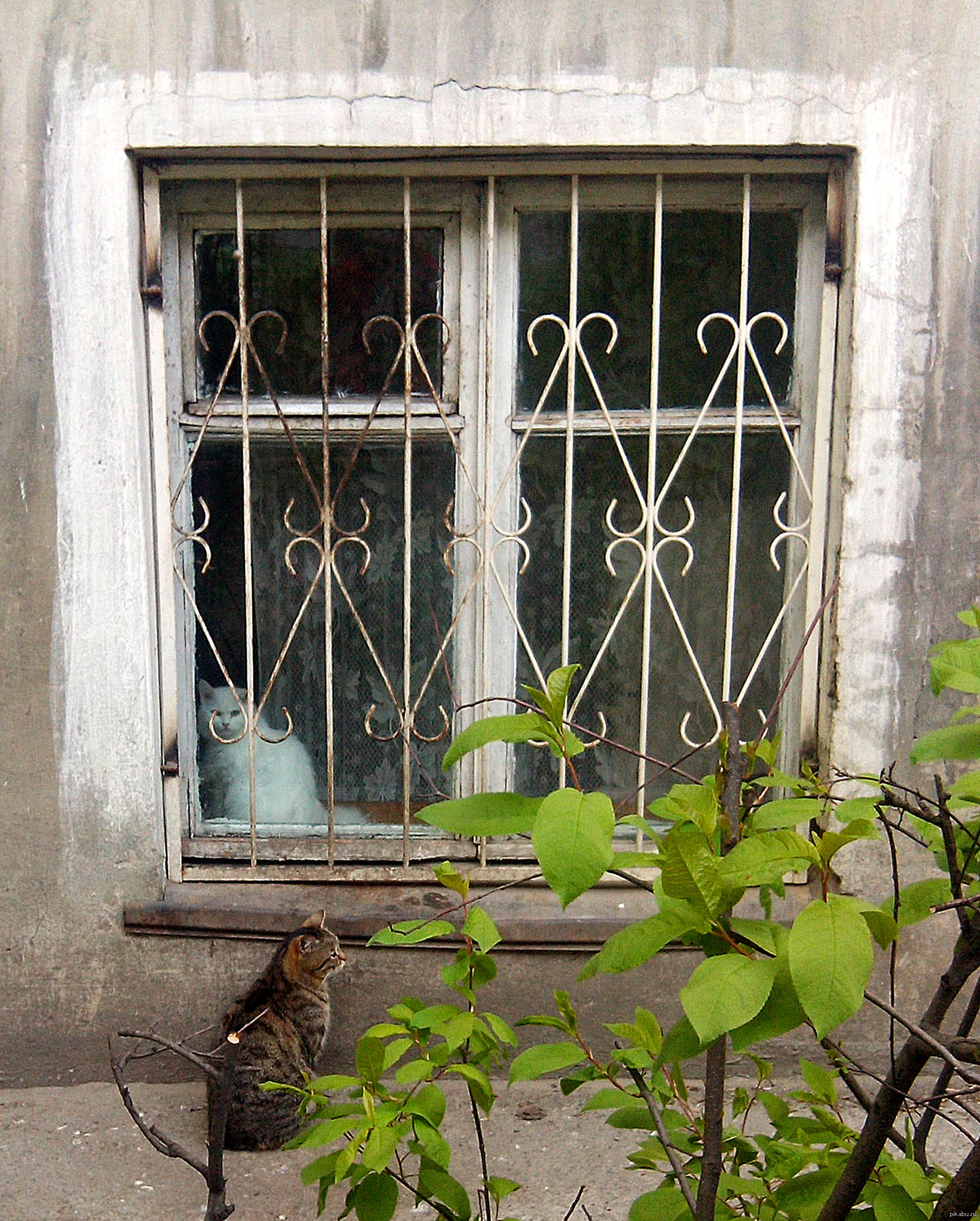 313 mitiad По дороге на работу увидел эру парочку. 11 лет назад - Выйдешь гулять? - Мама не пускает. [моё] Кот Свидание Окно