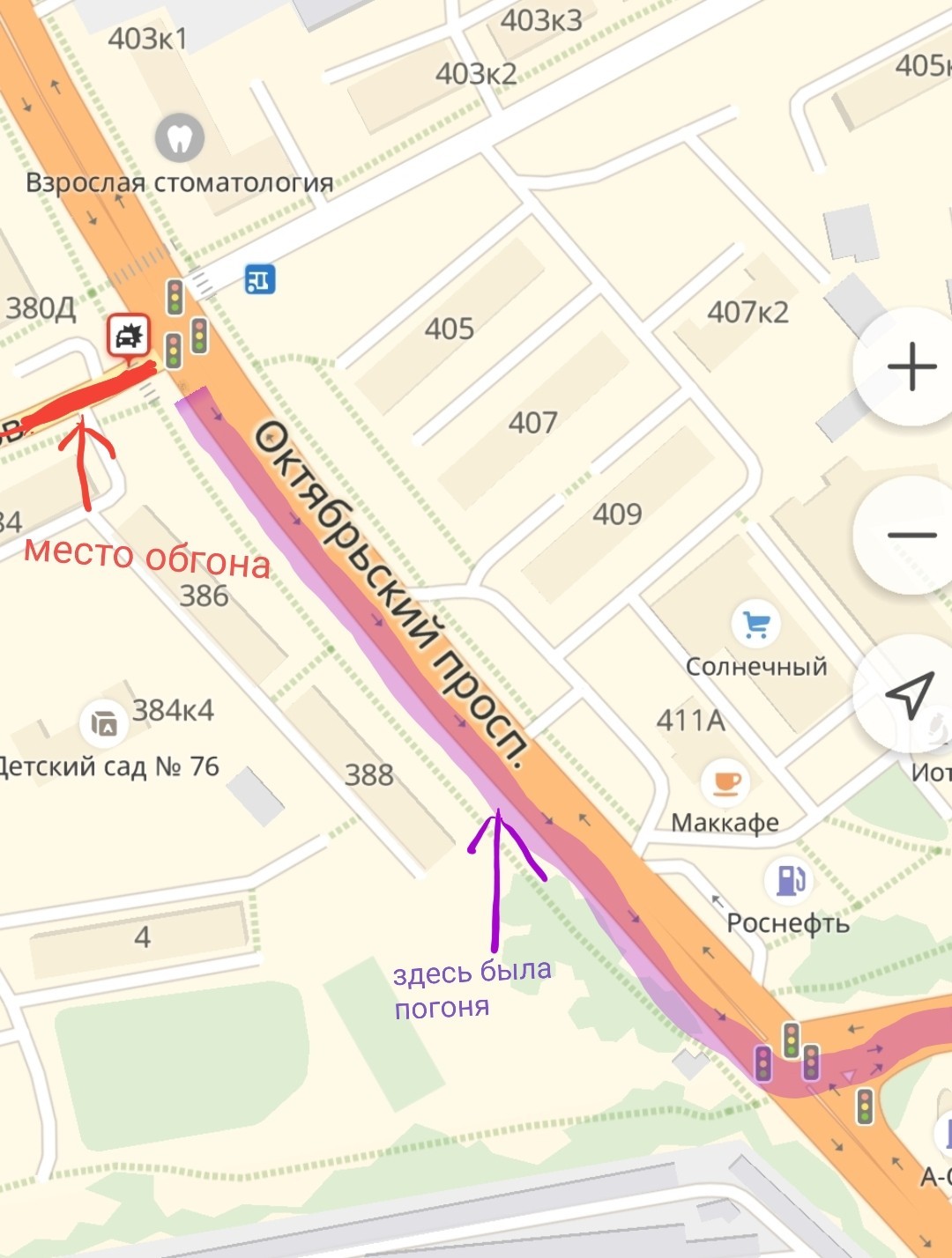 Прилетел ко мне сегодня товарищ из Питера и поехали мы с ним по складам помещение присматривать. И вот едем в районе Люберцов, ну как едем, из пробки в пробку переезжаем.В очередной раз стоим мы в довольно плотном трафике на очередном перекрёстке и ждем свой зеленый, до самого светофора еще метров 50, слева от меня двойная сплошная и такая манящая, разного рода экстремалов, свободная встречная полоса. А свято место, как известно, пусто не бывает и конечно я вижу как по встречке уже летит в сторону перекрестка фургон, типа Газели, только побольше. Ни хрена же себе, думаю я вслух, и тут же следом в моем зеркале заднего вида появляется блеск проблесковых маячков и вой сирены. Но за рулем фургона парень был явно бывалый, "Перевозчик" и "Малыш на драйве" точно у него в коллекции на DVD, начинается погоня в стиле лучших американских боевиков. Преследование усложняется плотным трафиком и опытом водителя, вправо-влево, подрезал автобус, проскочил на красный на следующем перекрёстке, но полиция идет по пятам, волшебная сила мигалок раздвигает плотный поток авто аки Моисей воды Красного моря. Пытаюсь не отставать, азарт нарастает, упустить зрелище как карма настигает незадачливого гонщика слишком обидно, сигналю чтобы меня тоже пропустили, но тачка из каршаринга мало впечатляет соседних водителей и драгоценное время утекает как песок сквозь пальцы. Потерял я их из виду всего минут на 5 максимум, но когда догнал, то они уже выезжали оба с обочины обратно на проезжую часть, довольный вид инспектора дпс свидетельствовал о том, что не зря он сегодня выходил на смену, но вот и водитель фургона был рад как мне кажется не меньше, что не придется ему дальше гонять на велосипеде. Звать кстати парня Андрюха, у него это на лобовом стекле написано, точнее висит такой темный вымпелочек небольшой, а вот номер авто Андрюха предварительно закрыл частично листком бумаги, и то как быстро он всё порешал явно говорит о большом опыте в данных делах. Для тех кому интересно где именно было действо, ниже прикладываю скриншот с карты.