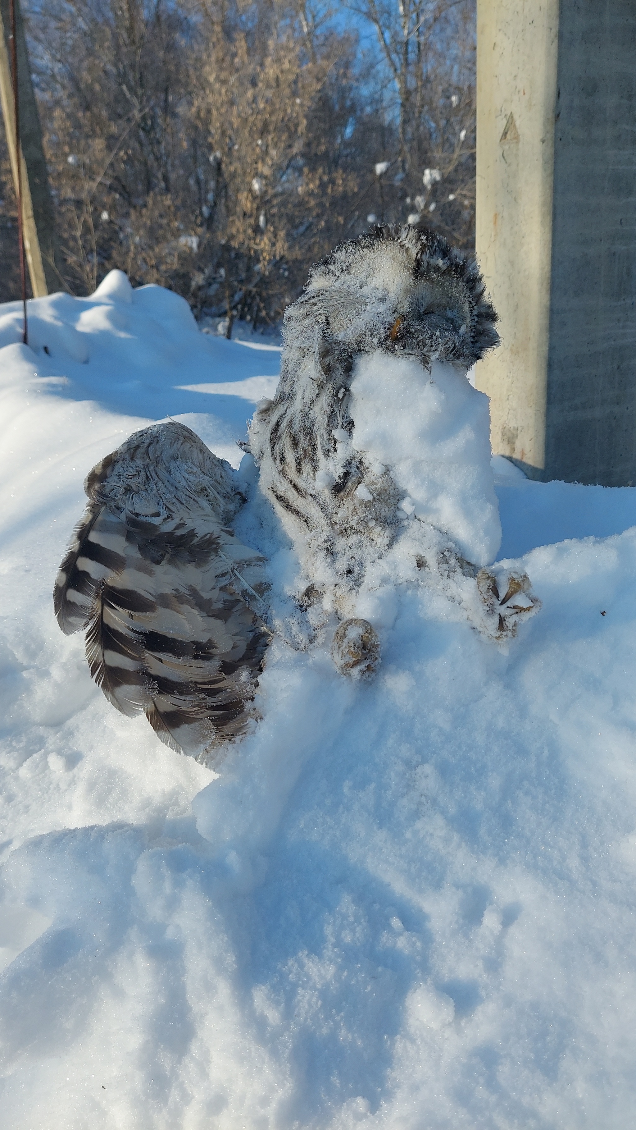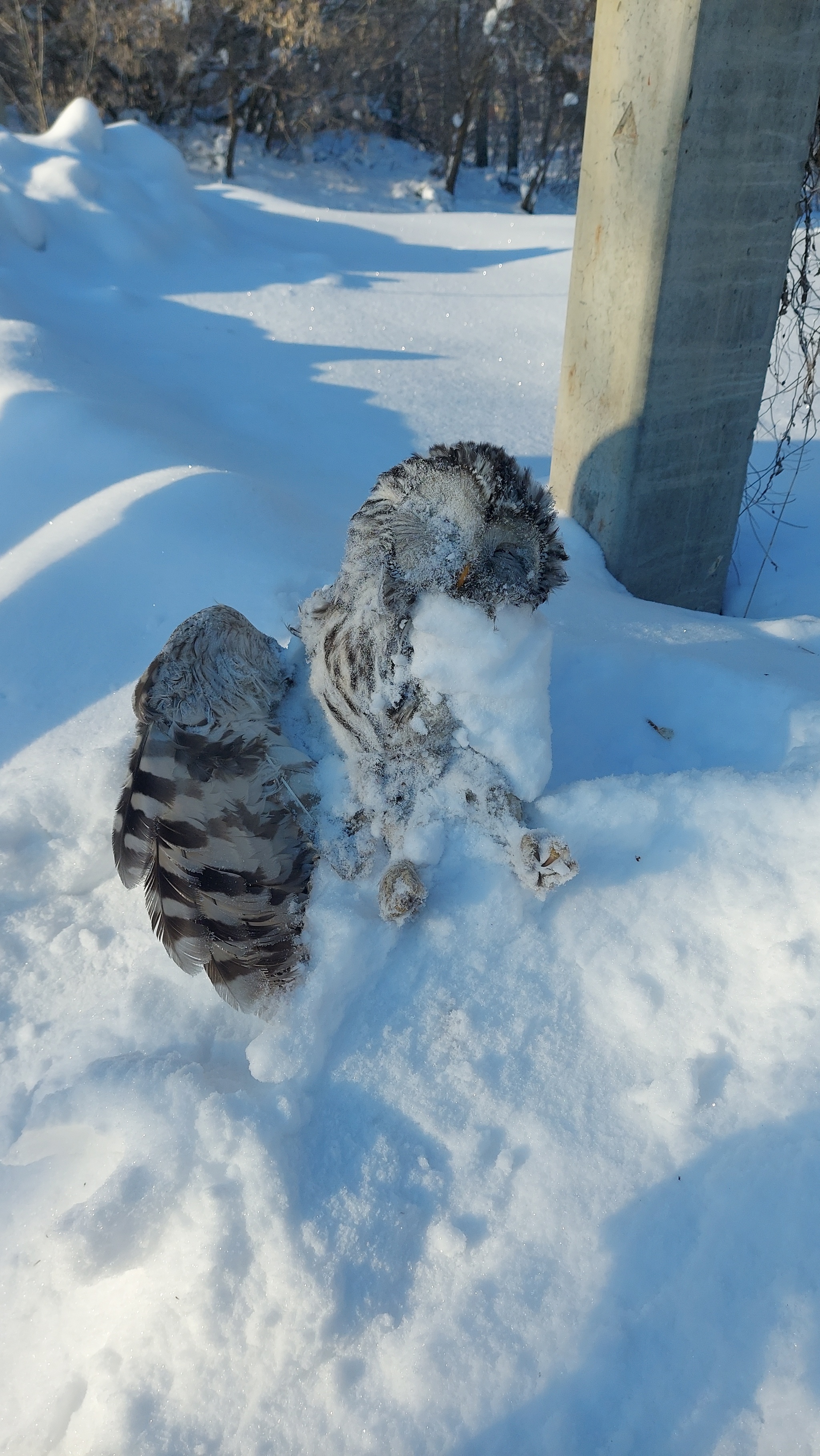 в предыдущем посте имел желание увидеть птицу которая оставила свои следы. И вот по пути на дачу мы обнаружили под столбом электропередач ( одна из версий гибели).
