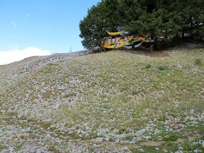 И о грустном - эти окрестные холмы неимоверно засраны бумажками с молитвами. Я говорю не про яркие флажки, которые по всем кустам натянуты, а про маленькие бумажки.