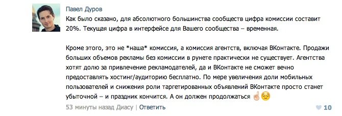 % соцсети не входит в стоимость рекламы в паблике - заказчик этот % платит в добавок к цене рекламы.