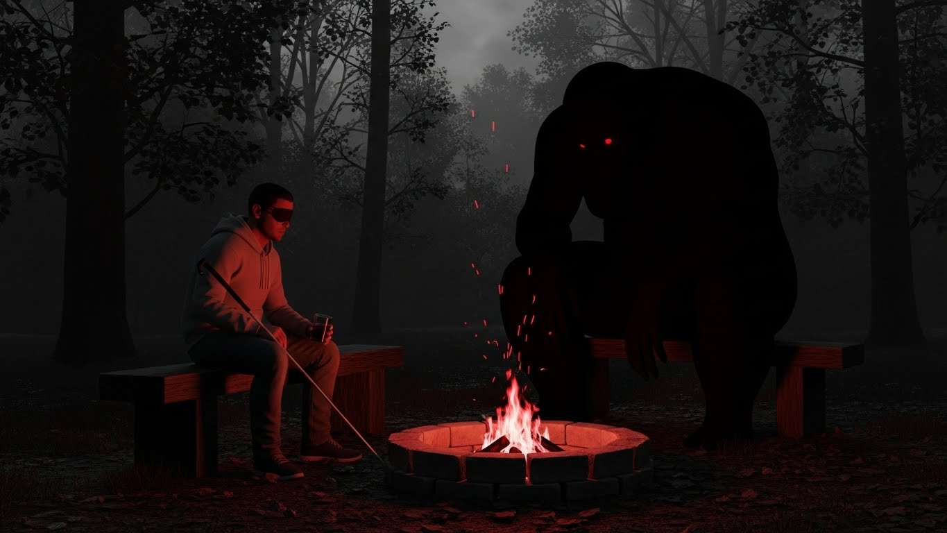 В тот вечер я снова сидел у костра и тихо слушал аудиокнигу. Мой друг, которого я начал называть Дубом — потому что он был большим и тихим, как дуб, — сидел на своём обычном месте. Я услышал звук разбитого стекла и поднялся, решив, что, возможно, поставил стакан наполовину на край стола, как это иногда случалось. Я сделал шаг к дому, чтобы пойти и убрать осколки, пока ещё помнил, где всё произошло.