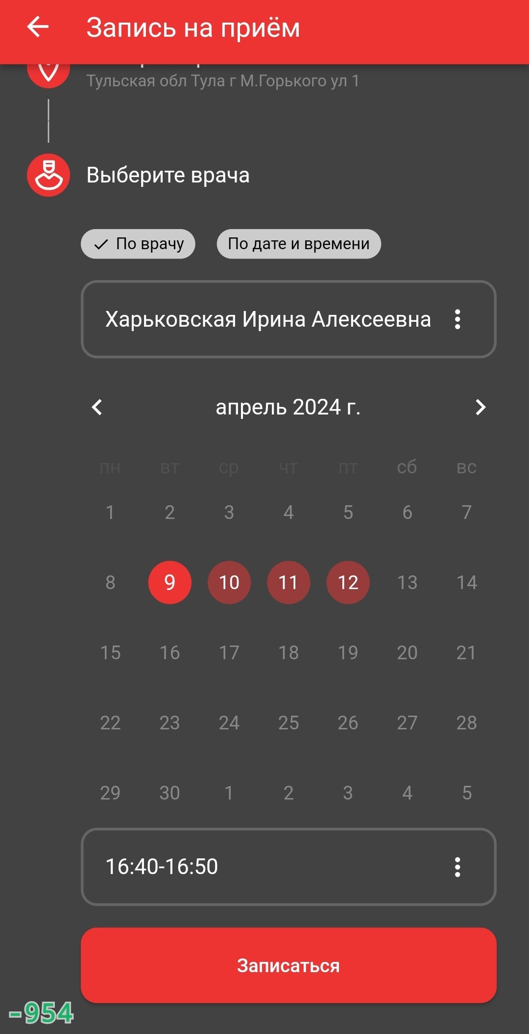 > Профильный врач легко и непринужденно отменяет запись за две недели