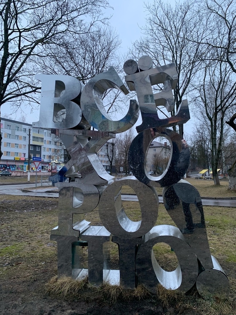 На площади расположен чудесный знак с направлениями городов и не менее милый знак, который сказал нам что все будет ХО-РО-ШО
