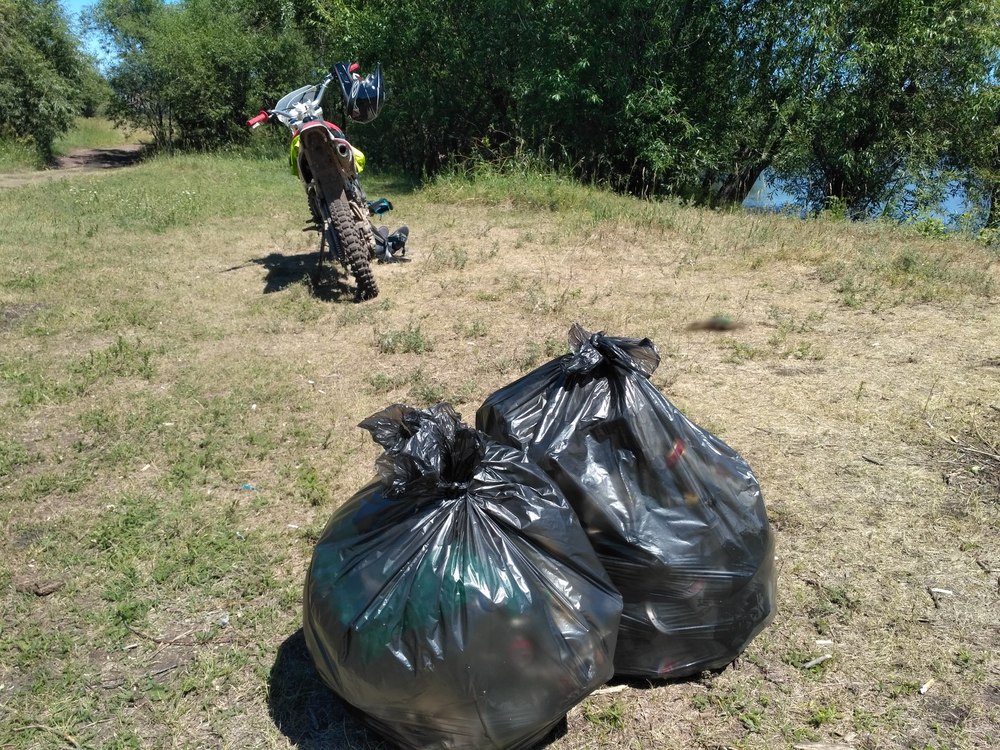 принимайте в лигу) часто катаю по всяким ебеням, и постоянно на местах отдыха вижу свалки. положил пакеты на 90л в рюкзак и собираю по немногу, на фото 10 минут и чистая поляна у реки)