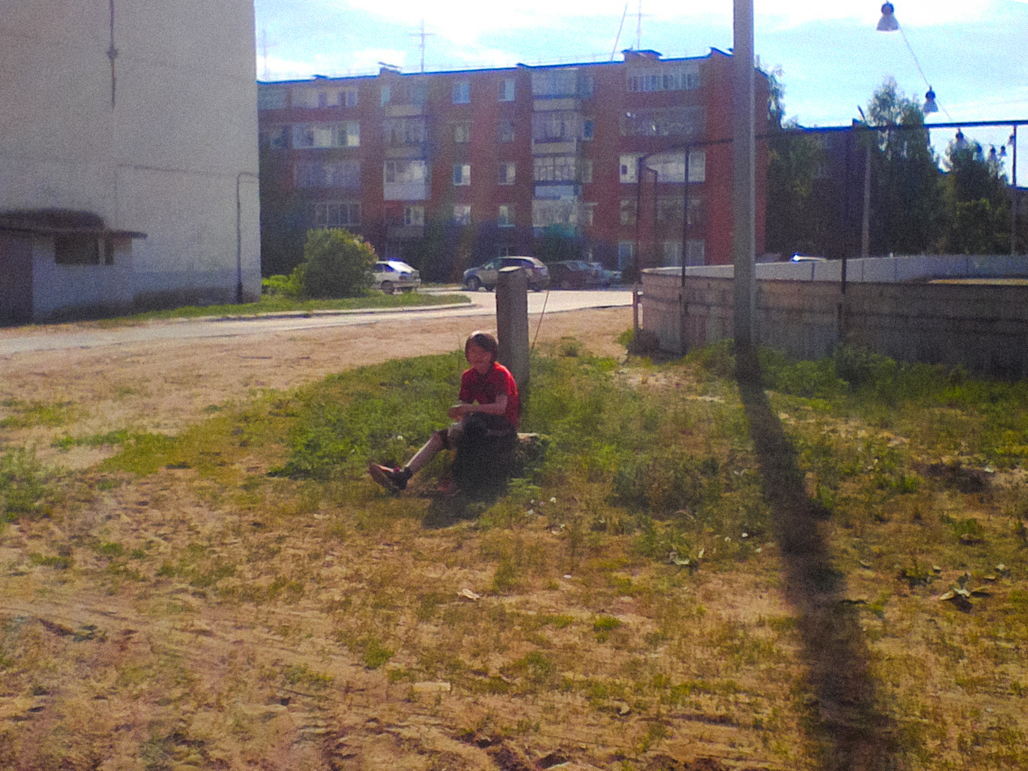 Разок прокатившись по горке, мы отправились вверх по крайней восточной грунтовой дороге вдоль посёлка и, доехав до конца, развернулись обратно, спускаясь, таким образом, под гору. Дорогу покрывал свежий, еще неутрамбованный щебень, что неприятно сказывалось на управлении велосипедом, учитывая всё возрастающий темп нисхождения. Опасения касательно ненадёжности спуска себя оправдали, когда я в попытке сбросить скорость слишком резко прожал барабанный тормоз, и в ту же секунду заднее колесо неизбежно вильнуло вправо, а рыхлые рассыпчатые камешки дестабилизировали байк, что привело к неминуемому падению. Последствия моей неаккуратности были таковы: велосипед в полном порядке, а я, в свою очередь, получил ряд повреждений, в том числе расцарапанное колено, отбитую ягодицу и разодранный локоть, на котором до сих пор "сияет" неизгладимый шрам. Поскольку я был ребёнком весьма незакалённого и мягкого характера, мне было тяжело переносить подобную боль, и мой великолепный друг, смекнув, что дела его товарища плохи, незамедлительно отбыл на поиски помощи — благо недалеко от той площадки, где мы катались с горки, давеча мы заметили пункт скорой помощи, куда он и поспешил. Он вернулся ко мне запыхавшись, но с кусками марли и ватой. Удачно перевязав раны, одноклассник любезно вытащил из своей походной сумки худи, который он припас на случай неожиданной смены погоды, и передал его мне. Одевшись и отдохнувши, я стал чувствовать себя намного легче. Никогда не забуду заботу моего лучшего друга.