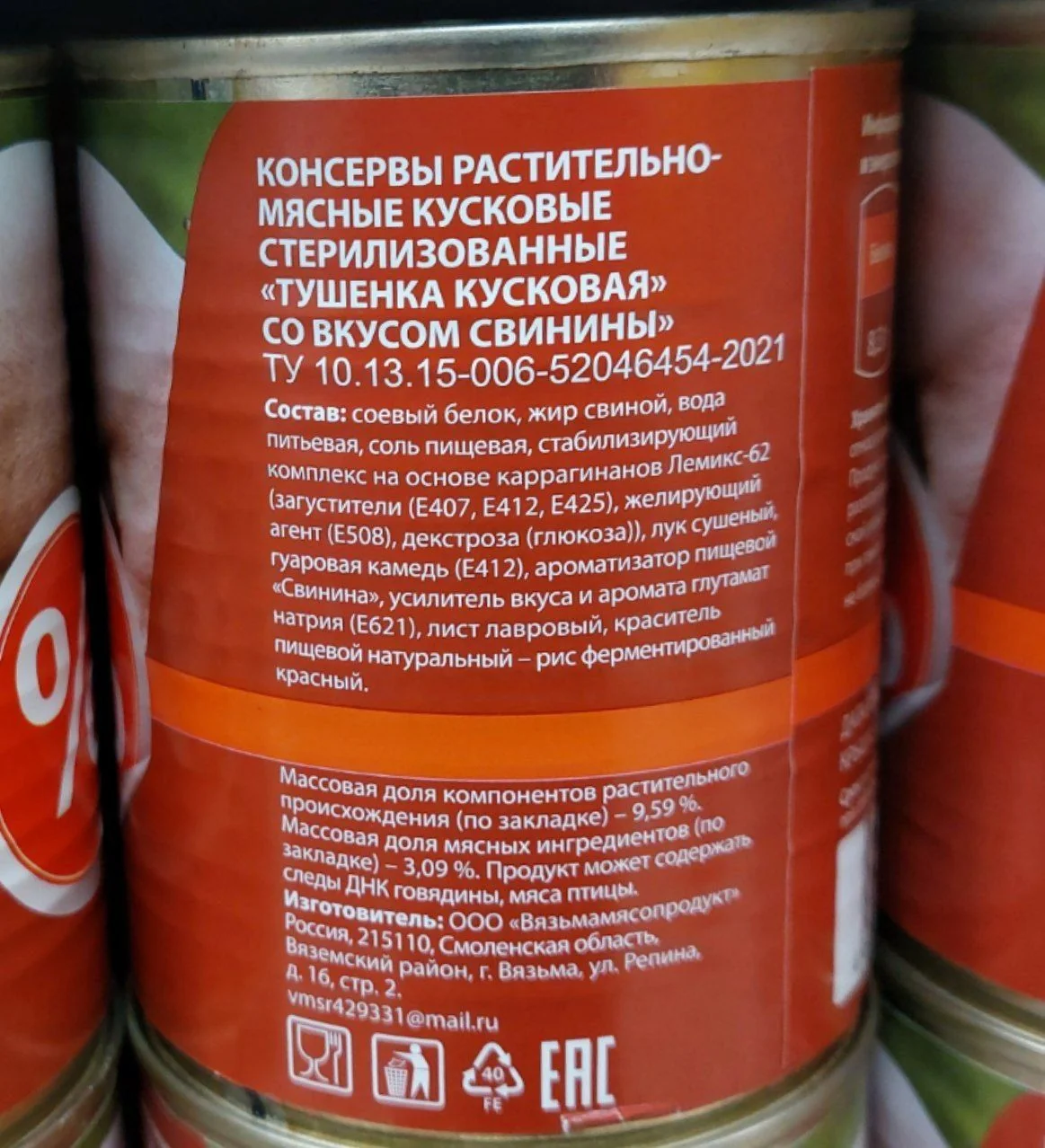 272 5igorsk По стоимости жести 11 месяцев назад Видели уже тушенку со вкусом свинины? Посмотрите на состав, ни грамма мяса. Россия Фотография Консервы Повтор 24 23 6 5 2 Ещё 0