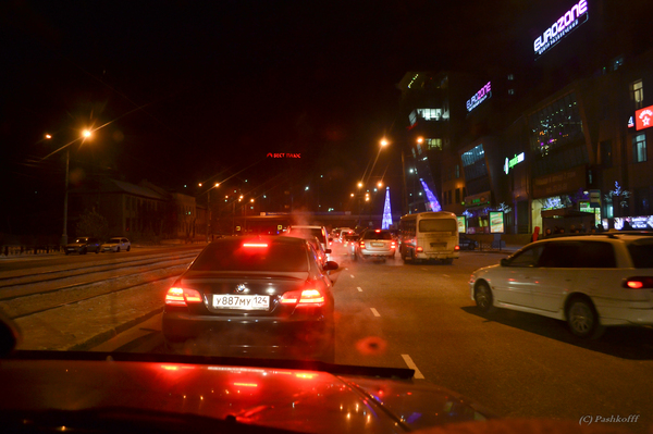 Зимой темнеет рано. Поэтому в город Улан-Удэ мы прибываем уже в темноте. Удивляемся, что время близится к 22:00, а мы попадаем в пробку.