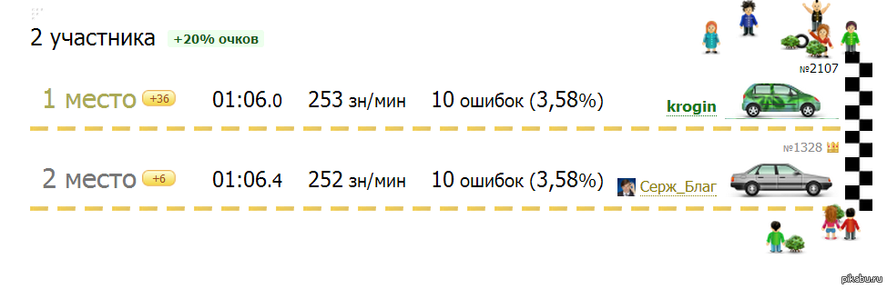 krogin Победитель по жизни =) 12 лет назад Не часто везет, но было как-то раз это: [моё] Клавогонки Моё Победитель по жизни