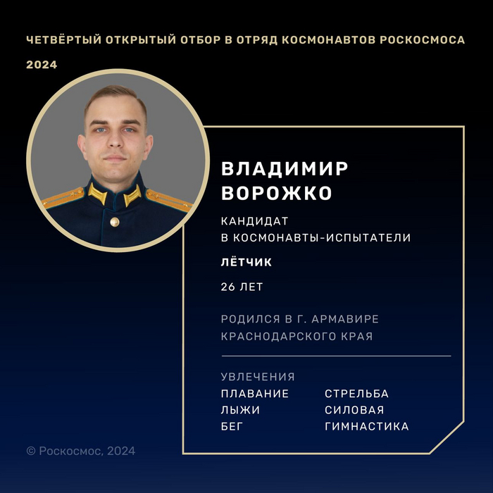 Четвертый открытый отбор в отряд космонавтов Роскосмоса проходил с 10 июля по 20 декабря 2023 года. В ходе него ЦПК рассмотрел 296 заявлений с пакетами документов от претендентов, из которых 80 принадлежало женщинам. При этом 72 заявления было направлено военнослужащими, 51 — специалистами ракетно-космической отрасли.