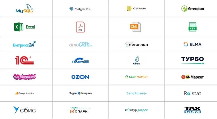1С — не единственный источник данных в компании. Чтобы получить полное представление, нужно объединить данные из различных информационных систем, например, CRM, маркетинговых платформ, ERP и других.