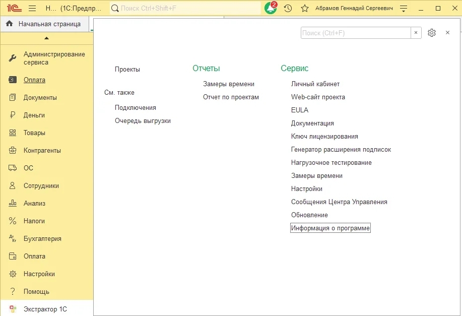 FIX-132685. В меню Экстрактора 1С добавлен раздел «Информация о программе»