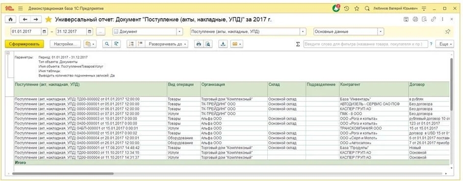 При использовании этой функции формируется таблица с отчетом, в которой настраиваются все нужные поля и период.