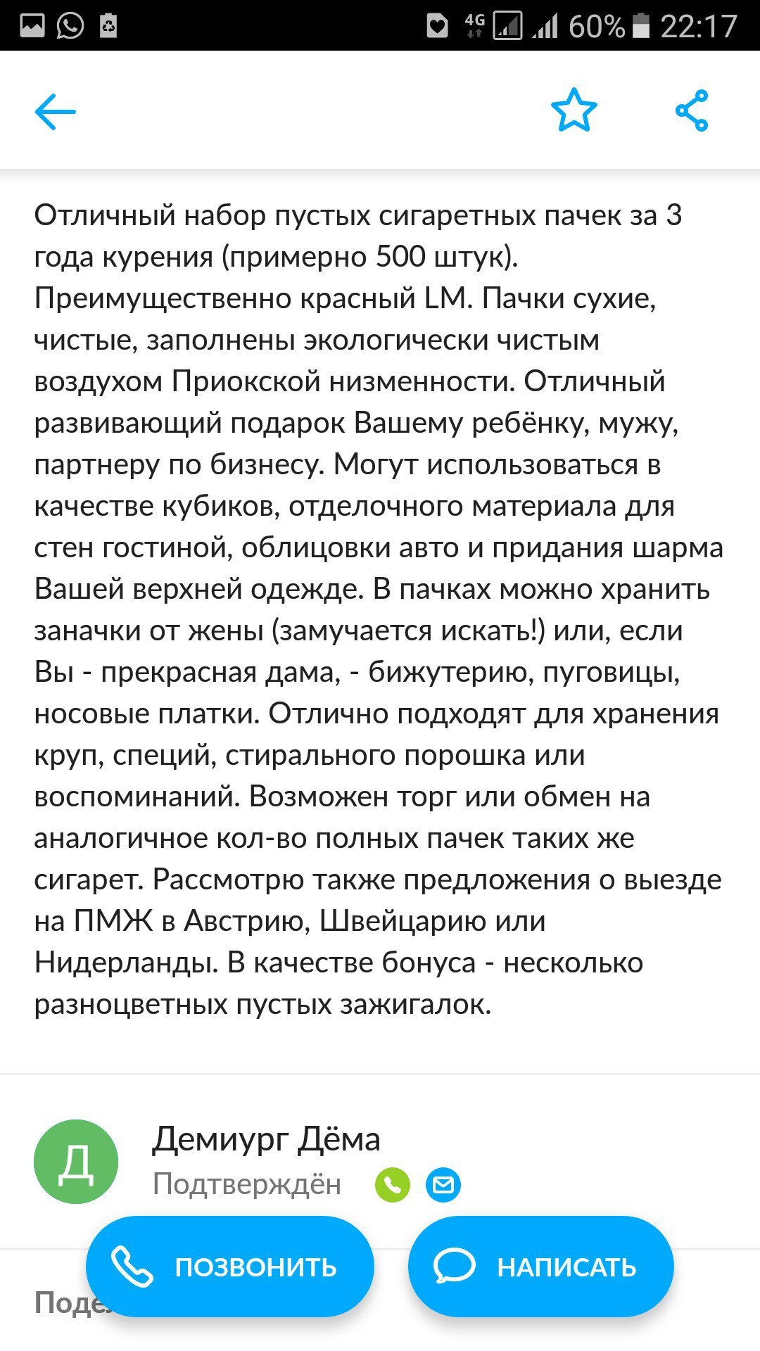 4 Avendattor Почему бы и нет? 8 лет назад [моё] Авито Длиннопост Сигареты Табак Юмор Прикол Тег для красоты Малый бизнес