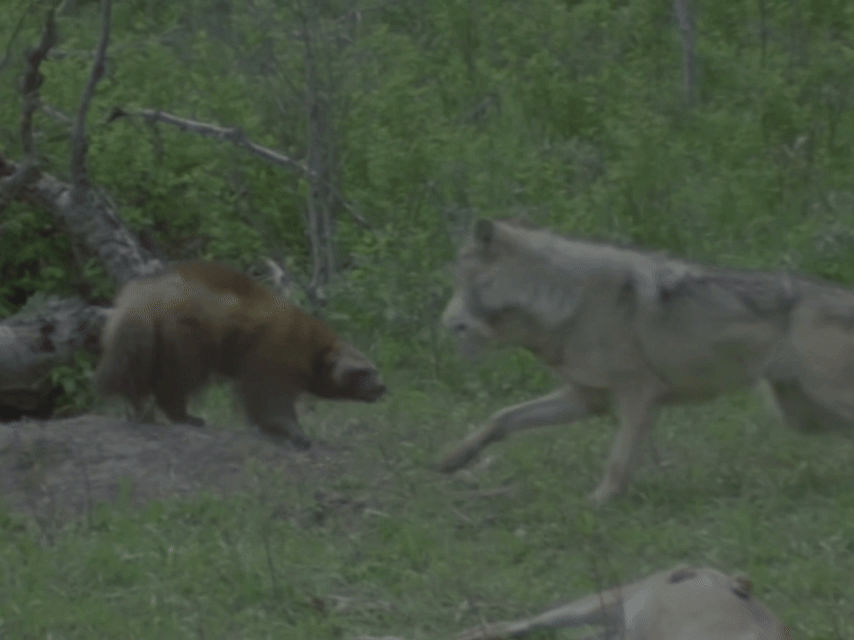 Не спешите крутить у виска! В Йеллоустонском заповеднике росомаха в одну росомашью морду удерживала стаю из нескольких волков и не дала им приблизиться к туше Сохатого.