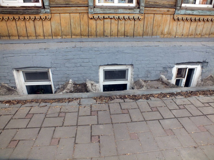 Наиболее быстро погружались в культурный слой дома, которые находились рядом с оживлённой проезжей дорогой, поскольку она требовала постоянного ремонта, т.е. появления на ней всё новых и новых слоёв. В результате часть нижних этажей некоторых домов оказывались по землёй практически полностью. На следующих двух фото - окна домов в Самаре