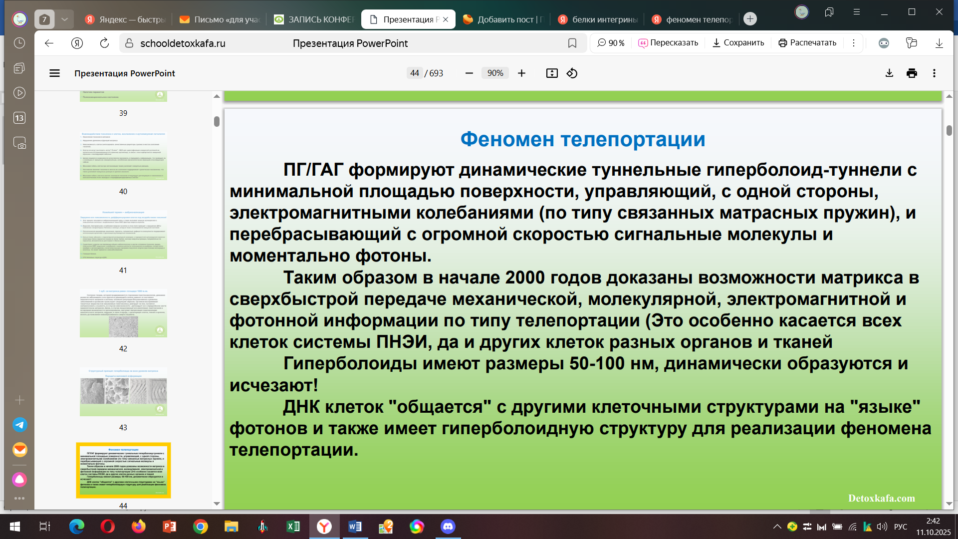 Он вещал о методах диагностики степени зашлакованности организма, в частности, внутриклеточного матрикса. О том, что наш организм постоянно накапливает в себе токсины и все болезни у нас от ПАРАЗИТОВ. Ну а также, если вы не знали, в вашем теле существует телепортация