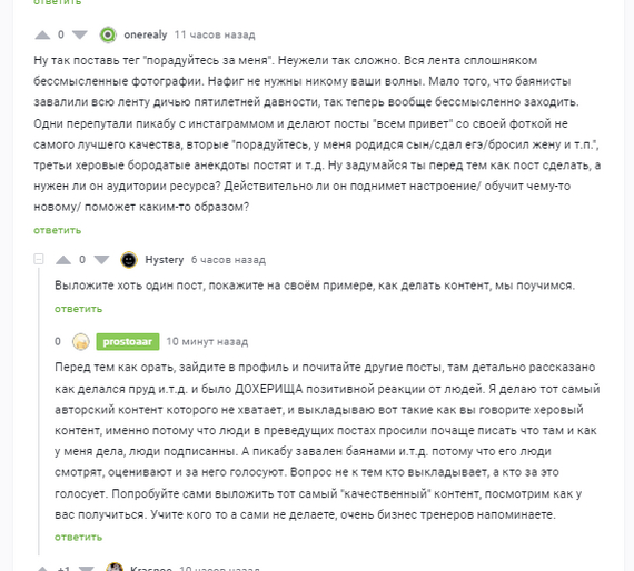 Вот именно из-за таких людей и не очень хочется что то выкладывать, особенно от себя какие то вещи. Речь про пост #comment_277276236 Побольше и почаще негатива ребята, точно к успеху придём, авторы со своим контентом точно в топе будут.