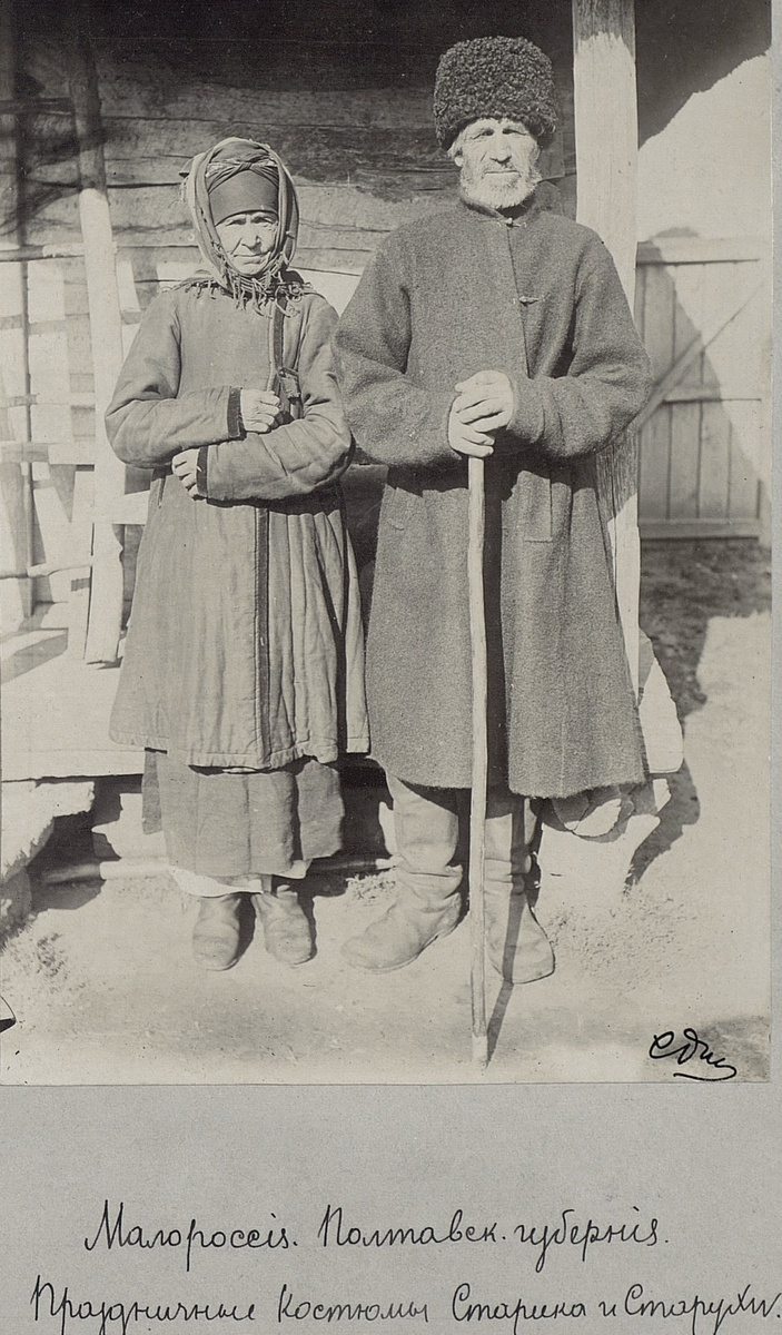 Старик со старухой в праздничной одежде. Даже в лучшие свои дни, нарядившись, они выглядят изможденными. Праздники были редкостью, а будни - сплошной каторжный труд.