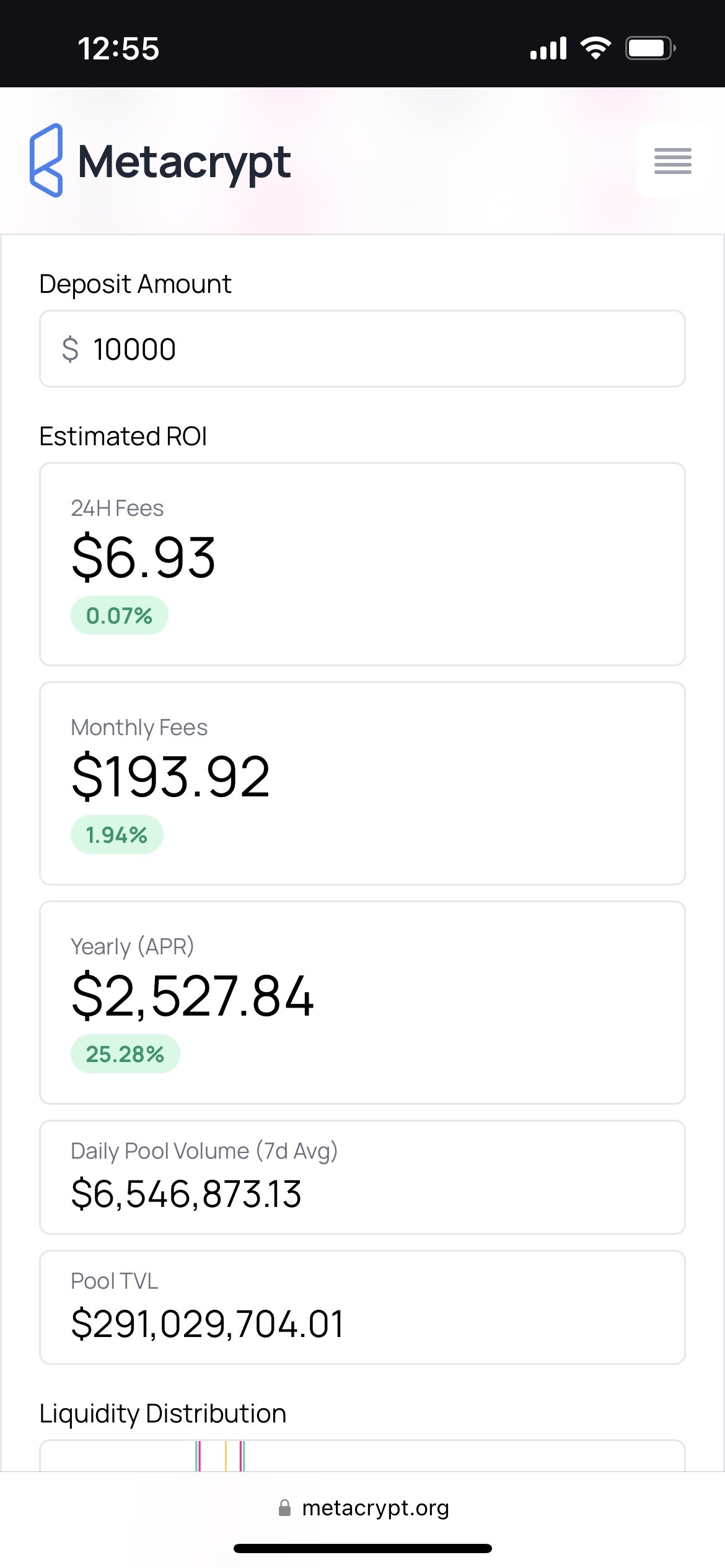 Все, что нужно сделать для расчетов, это изменить параметры калькулятора, чтобы отразить нижний и верхний предел потенциальной позиции ликвидности. Затем просто сообщите калькулятору, сколько ликвидности вы планируете добавить. В течение нескольких секунд вы получите четкое представление о том, сколько именно можно заработать с помощью V3.