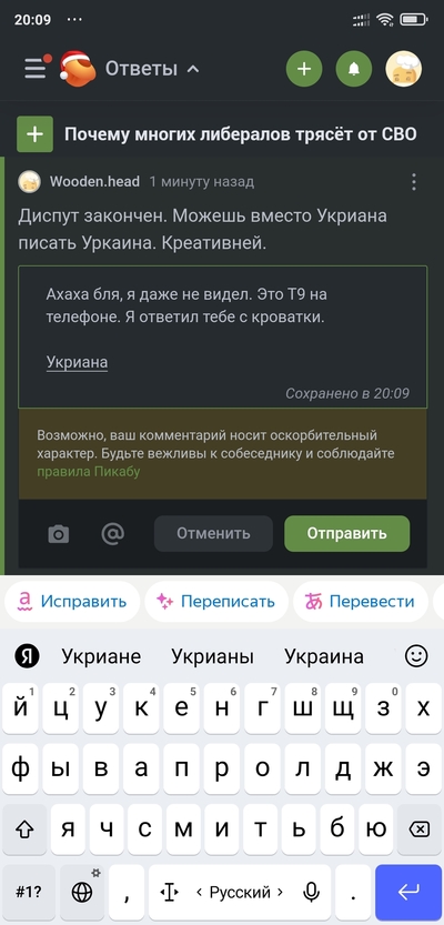 Ахаха бля, я даже не видел. Это Т9 на телефоне. Я ответил тебе с кроватки.
