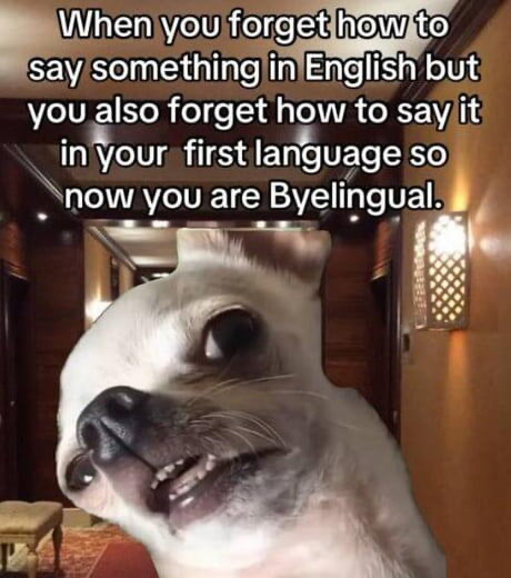 Когда вы забываете как сказать что-то на английском, но вы также забываете как сказать это же на вашем родном языке, то вы теперь Покалиглот.