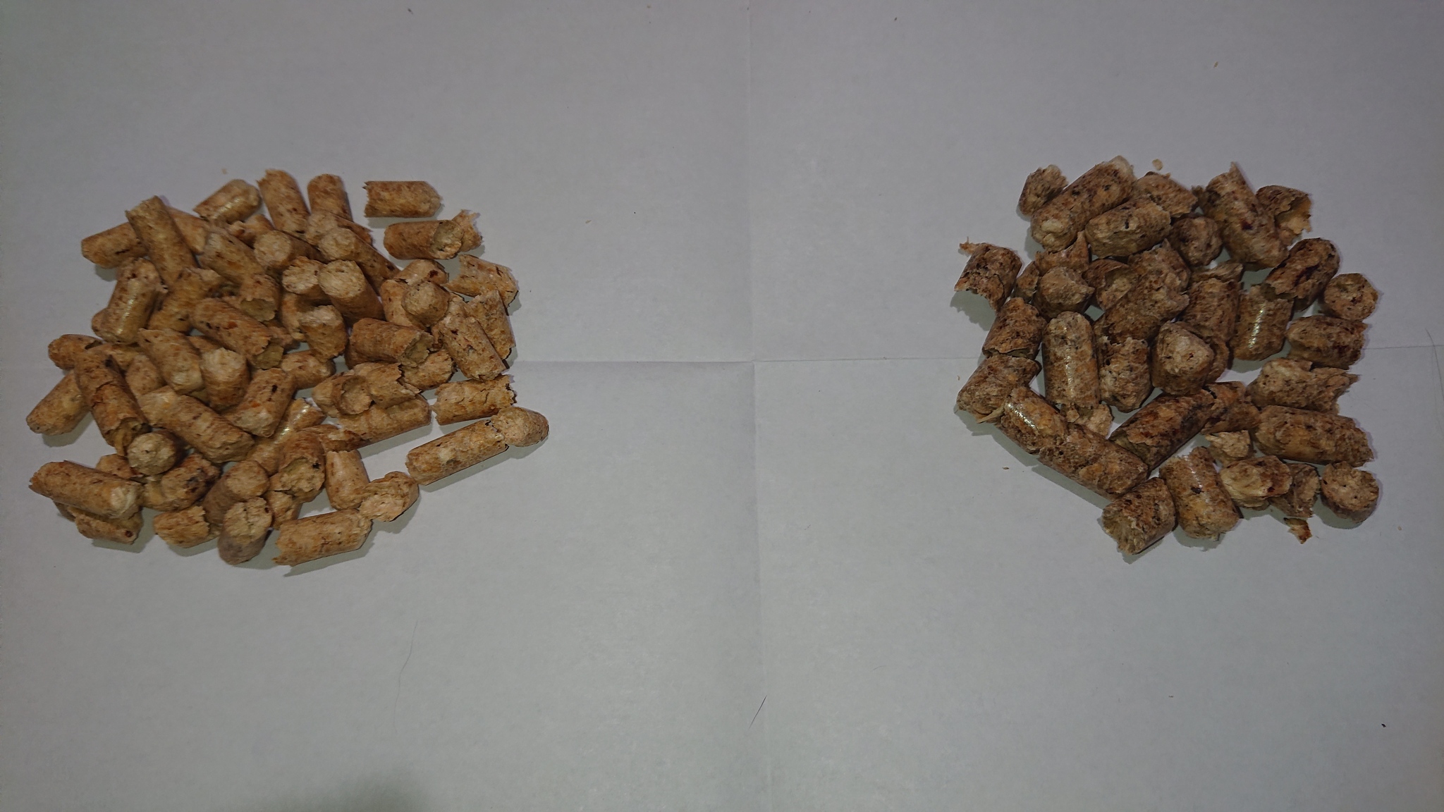 Определить наполнитель из коры или с высоким содержанием коры легко можно по цвету, с корой - темнее.