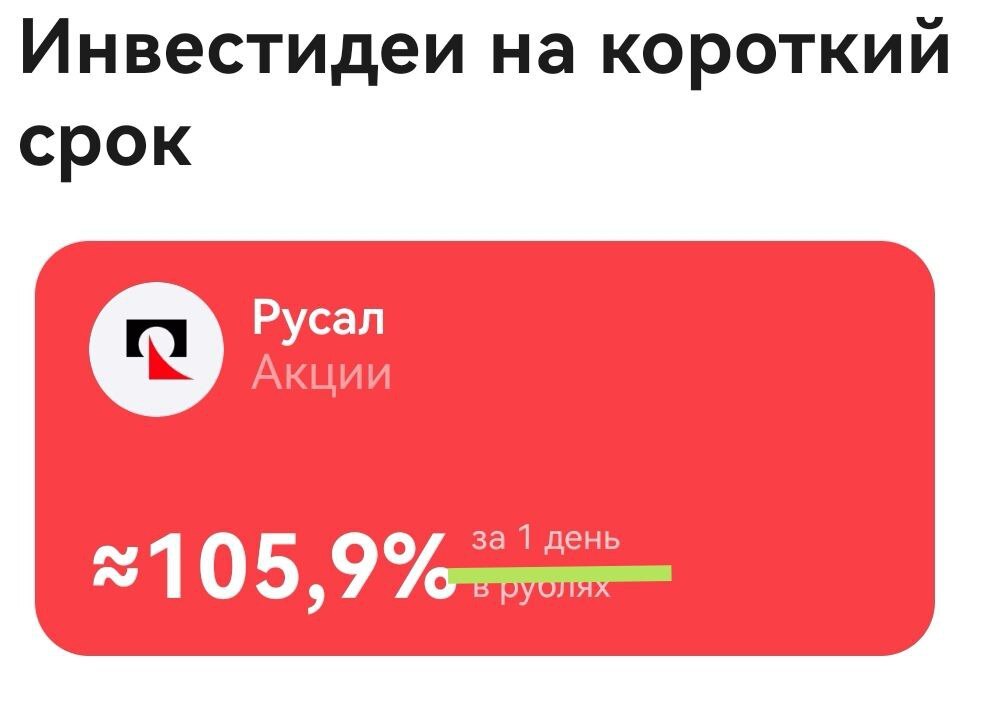 В качестве примера приведу скрин одной из идей аналитиков. До конца срока идеи остался 1 день, а разрыв между текущей ценой и прогнозной только увеличивается. Доходность 105,9%!!!