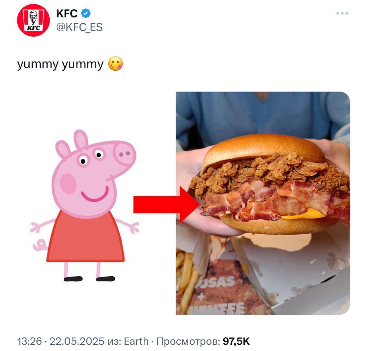 9 argentina101 Кулинария Почему нет? 9 месяцев назад Испанский KFC решил заколлабиться со Свинкой Пеппой KFC Свинка Пеппа Бургер Еда Коллаб 1 Ещё 0